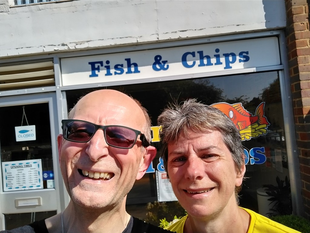 “Did you know today is National Fish & Chip Day?…”, writes our Event Director. “Maybe you’ve already been to the Chippie this evening. Anyway, it’s inspired this week’s theme of “Fish & Chips and the Seaside”. Put on your knotted handkerchief and find your bucket and spade. Choose the best plaice for your selfie. Maybe outside your local chippie? Or if you’re lucky, perhaps you are by the seaside this weekend? Go for your Saturday run, careful, don’t flounder and make sure your trainers have enough common sole, thick black sole or even lemon sole. If you can think of any better fish puns let minnow.”