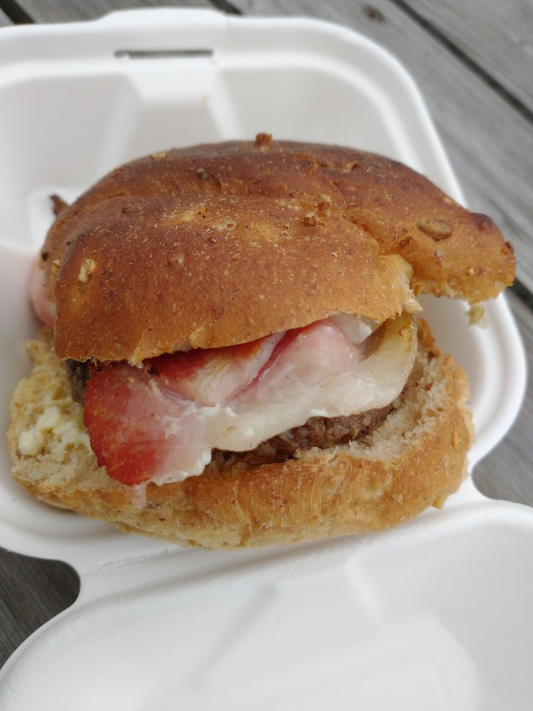 Oh and one last unexpected pleasure awaited us at the Route 7 Café afterwards…A bacon AND HAGGIS buttie. (Better than a deep fried MarsBar* 😉 ) * Other confectionery is available.