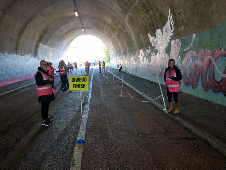 The volunteers were a friendly lot, and bilingual to boot! I hailed each Marshal on the way out with the customary “Thank you Marshal” to which they replied either “Well done” or “You’re welcome”. On the return trip I remembered to say diolch (thank you) to which I received a cheerful “Da iawn” which means “Well done” or, perhaps in context, “Great run”! )