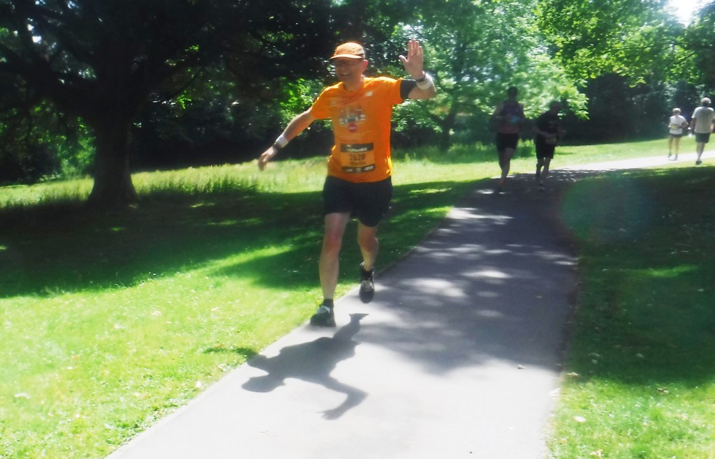 I was later to be on the receiving end of runners’ kindness on the Graves Park stage. I was struggling up the hill, almost breaking into a walk , when a voice from behind me pipes up: